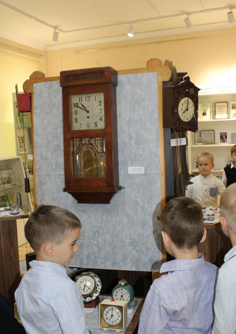 Выставку из фондов музея "История в часах" посетили самые маленькие учащиеся гимназии №1 г.Дятлово. Вместе с экскурсоводом они поразмышляли, что значит "живые" часы, вспомнили про солнечные часы, песочные и водяные. И конечно, на примере часов на выставке, они узнали про виды часов, где часы изготавливают, и кто их чинит, и много другого интересного про часы.
